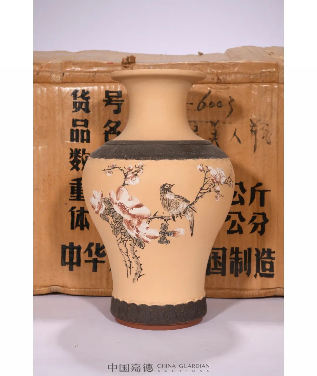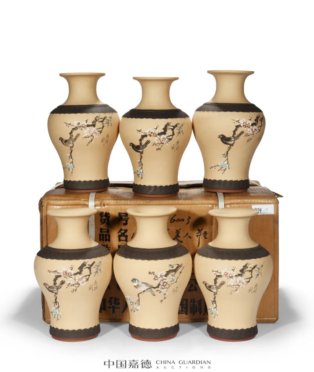 参阅:《砂壶集》第329页,上图,海洋紫砂陶艺公司出版,远东出版社当代 紫砂巧色铭花鸟纹十三寸云肩美人瓶一百五十三件备注:部分器物的书画铭刻署名有“秀洪刻”、“白云刻”、“小石刻”、“兆渥刻”、“辛酉年夏月刻”钤印:丁山人、静(底款);丁山人、张记、静、兽形章(盖款);静(把款)●请您于参与拍卖活动当日24小时前完成账户注册并交纳保证金。时间:2023年1月6日至13日10:00–18:00地点:嘉德艺术中心B2层(北京市东城区王府井大街1号)。●中国嘉德为竞买人提供查看拍卖标的实物的条件,务请竞买人亲自审看。本公司对拍卖标的不承担瑕疵担保责任。请拨打1501000622015910807786转分机9中国嘉德国际拍卖有限公司(总部)