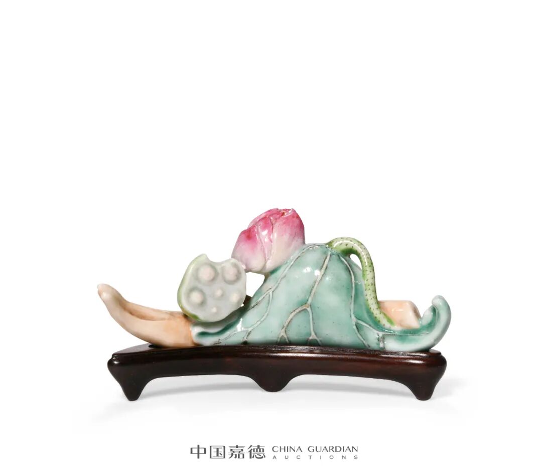 瓷器部分, “万卷馆藏瓷”与“埏古堂藏瓷”为私人收藏专场,共呈现清代瓷器六十余件,颇值关注。“递藏之趣”专场囊括国有文物商店旧藏及知名收藏家旧藏,来源清晰可靠,是广大藏家及收藏爱好者扩充自身收藏的好机会。“余辉新韵—晚清民国瓷器”和“启程—明末清初瓷器”两个专场,侧重呈现不同历史背景下,因朝代更替所带来的瓷器审美品味的变化。“涵芳—单色釉瓷器“中近三十件单色釉瓷器,兼案头雅玩及宫廷陈设,净秀涵芳,极具韵味。 “以适幽趣——明清茶器臻选”专场为私人茶器收藏专场,所呈现明清精美茶器品质与画意兼具。