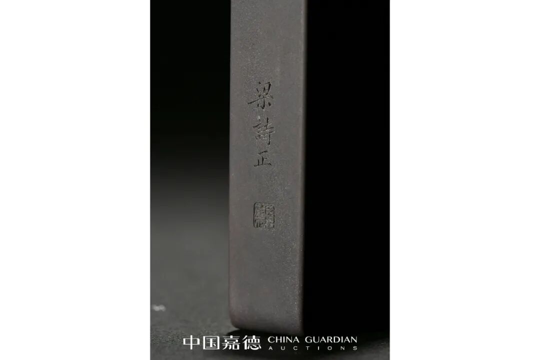 铭文“留畊”、边铭“梁诗正”、钤印“臣梁诗正”、带紫檀盒←按住图片向左右滑动可浏览→