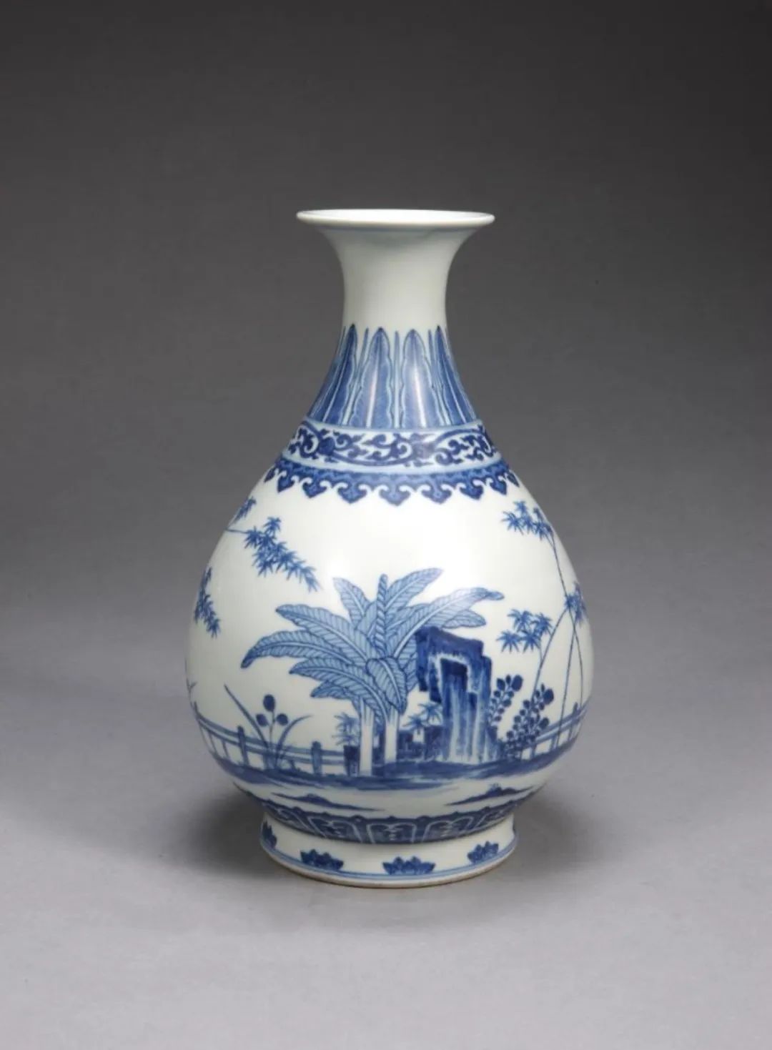 清道光 青花竹石芭蕉纹玉壶春瓶