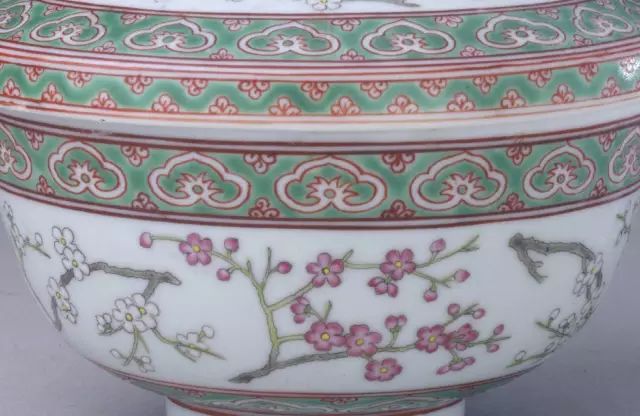 清道光 松石绿地粉彩缠枝莲福寿纹