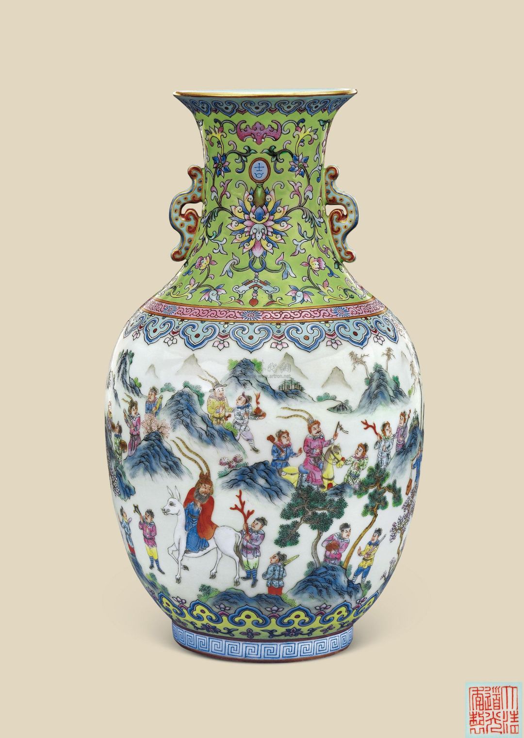 清道光松石绿地粉彩福寿纹葫芦瓶