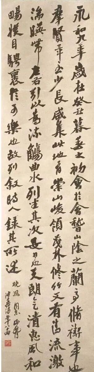 钤印:沙孟海(朱文)、於越频海之民(白文)沙孟海《节录兰亭序轴》 1983年