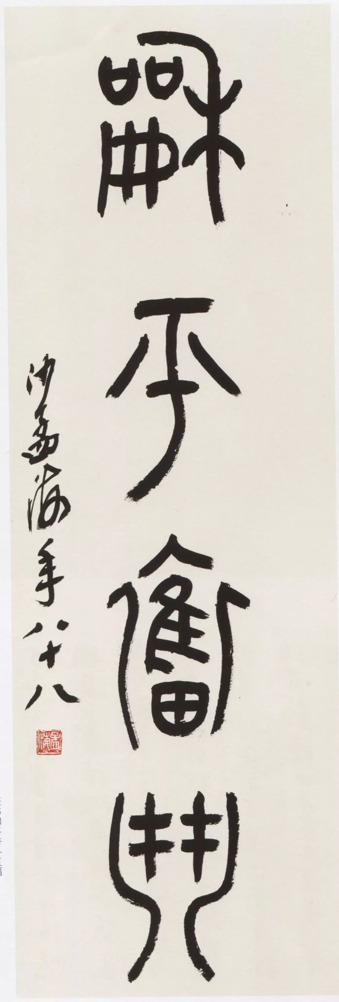 款署:晓风同志正腕,沙孟海年八十四。沙孟海《榜书龙》 175×175cm 1986年 沙孟海书学院藏沙孟海《篆书和平奋斗直幅》 91.5×31.5cm 1987年作 浙江省博物馆藏