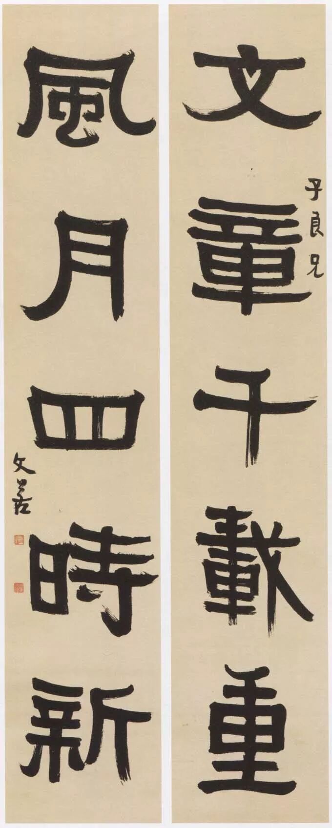 释文:文章千载重,风月四时新。