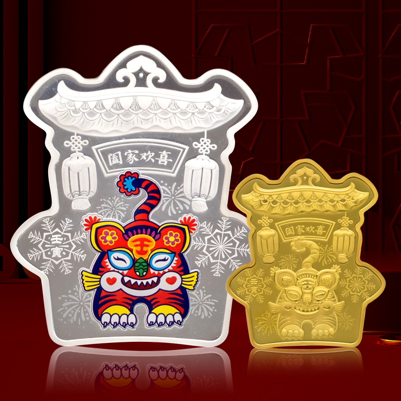 如果觉得金条过于庄严大气,藏友们不妨了解一下金总发行的虎年生肖喜金银章~传统与现代集一身,满满的国潮风,这样的小老虎很难让人不爱它!![]()
