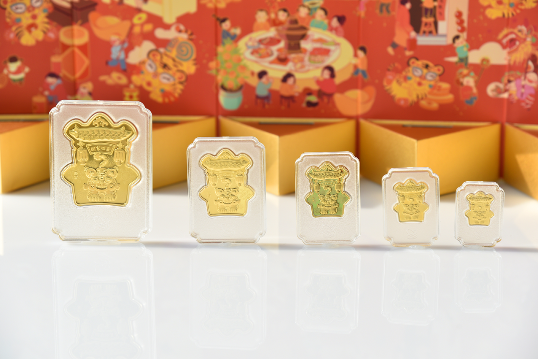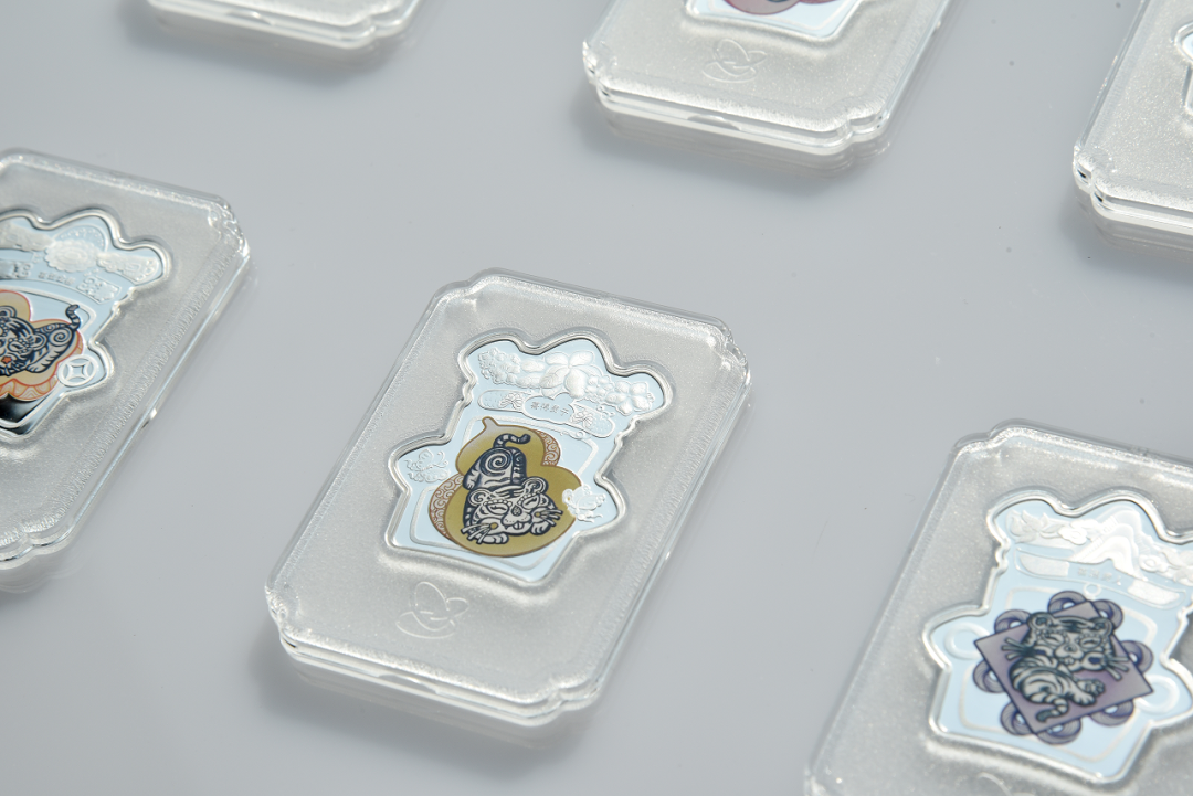 金银章则是延续了“开门见喜”的理念。屋檐、灯笼、烟花、雪花,像不像过年时家门口站了一只喜庆可爱的小老虎,还不快开门迎它回家?![]()