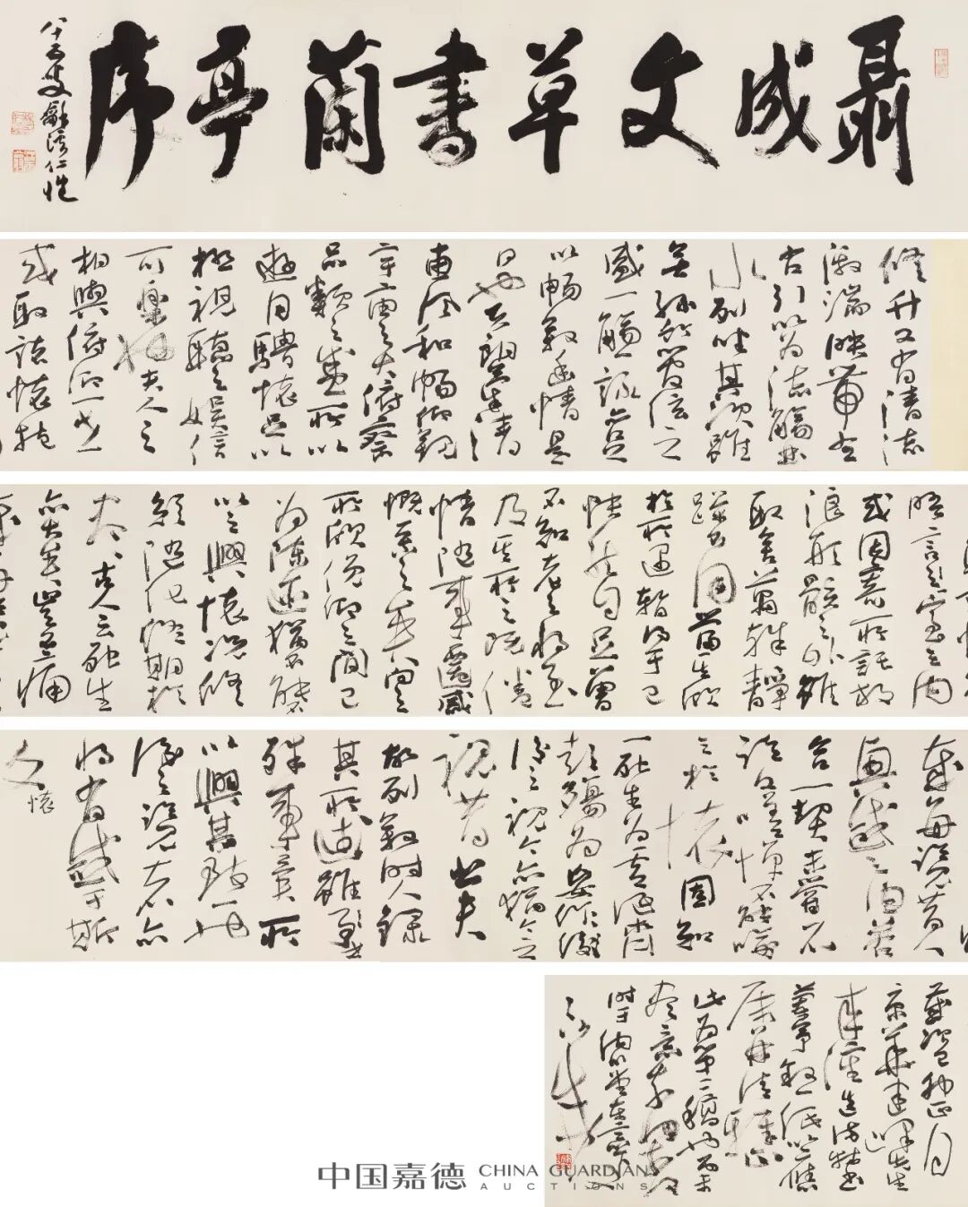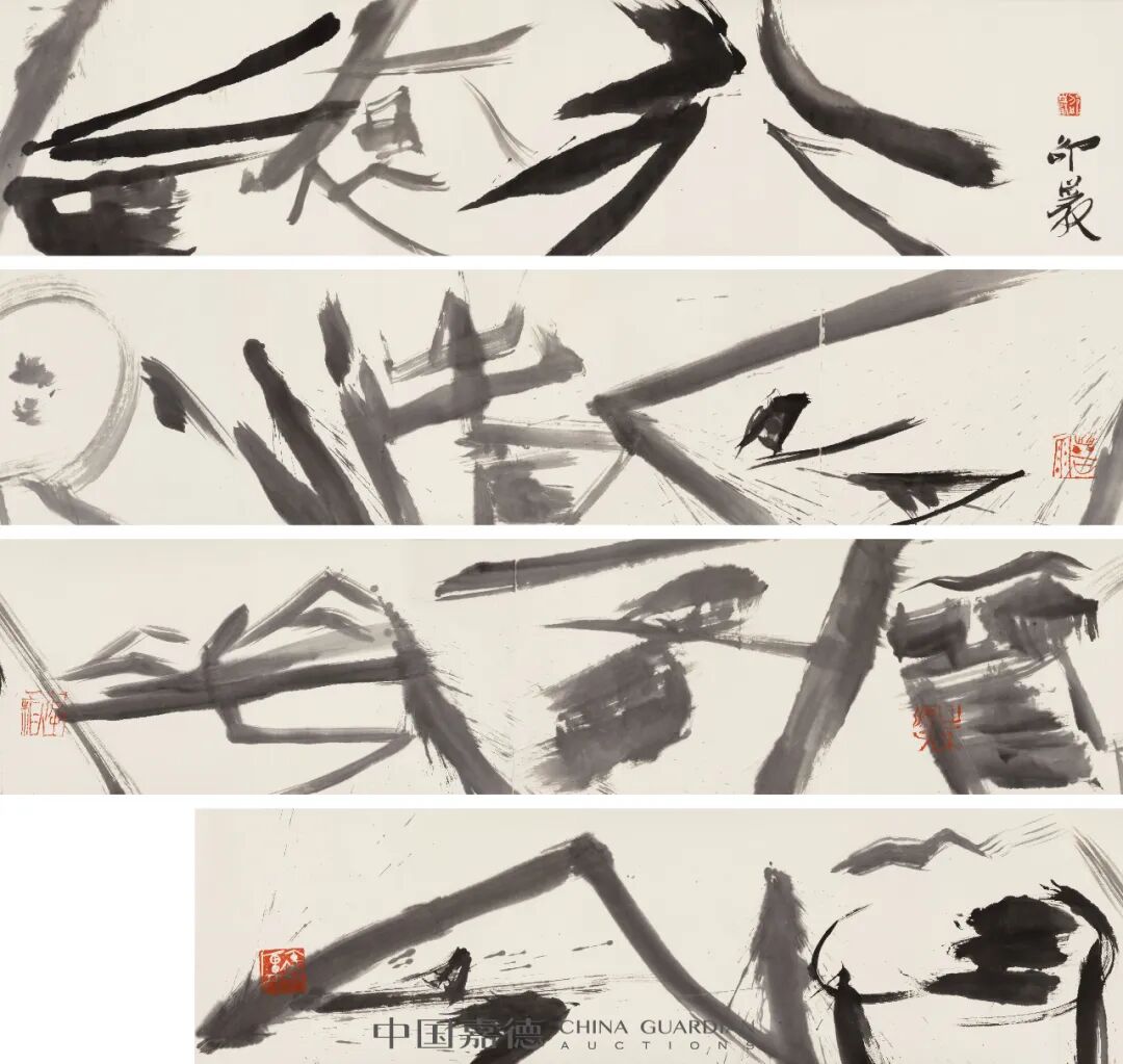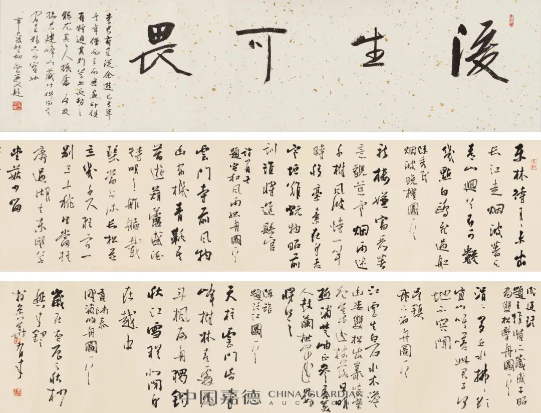 说明:Lot11331——Lot11348为同一藏家旧藏,原藏家直接得自艺术家本人。释文:宜弄花,宜观涛,宜远行。(长卷左至右顺序)