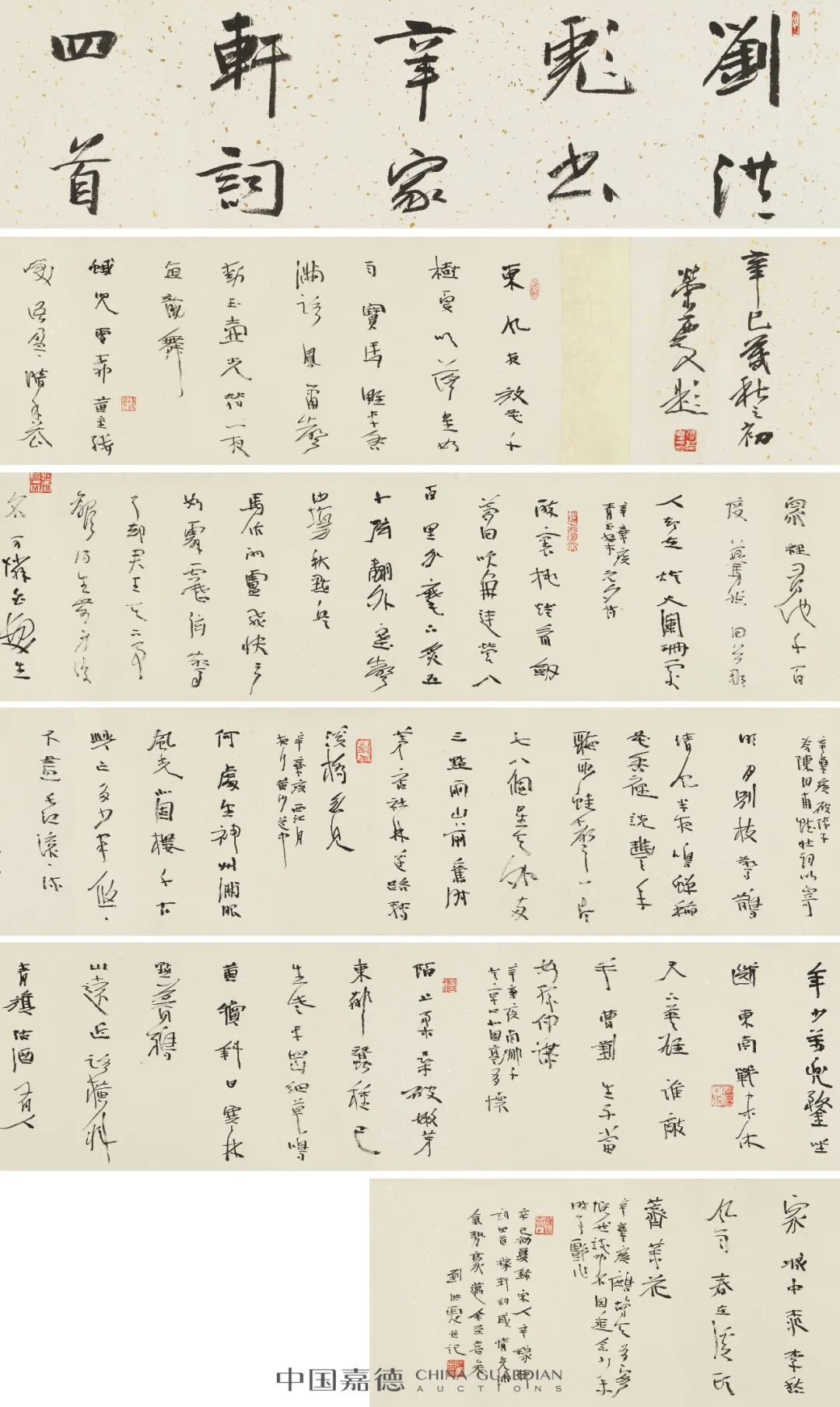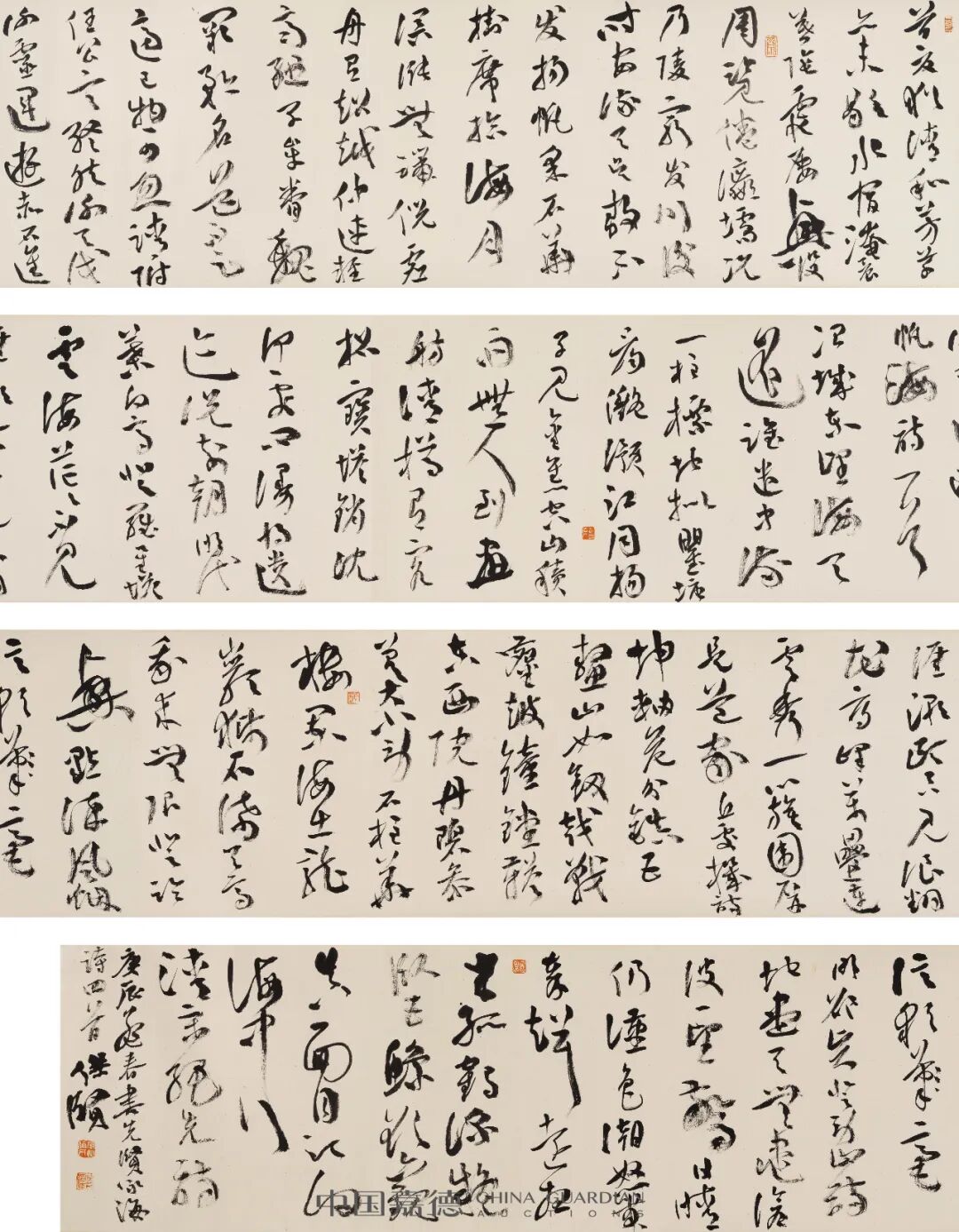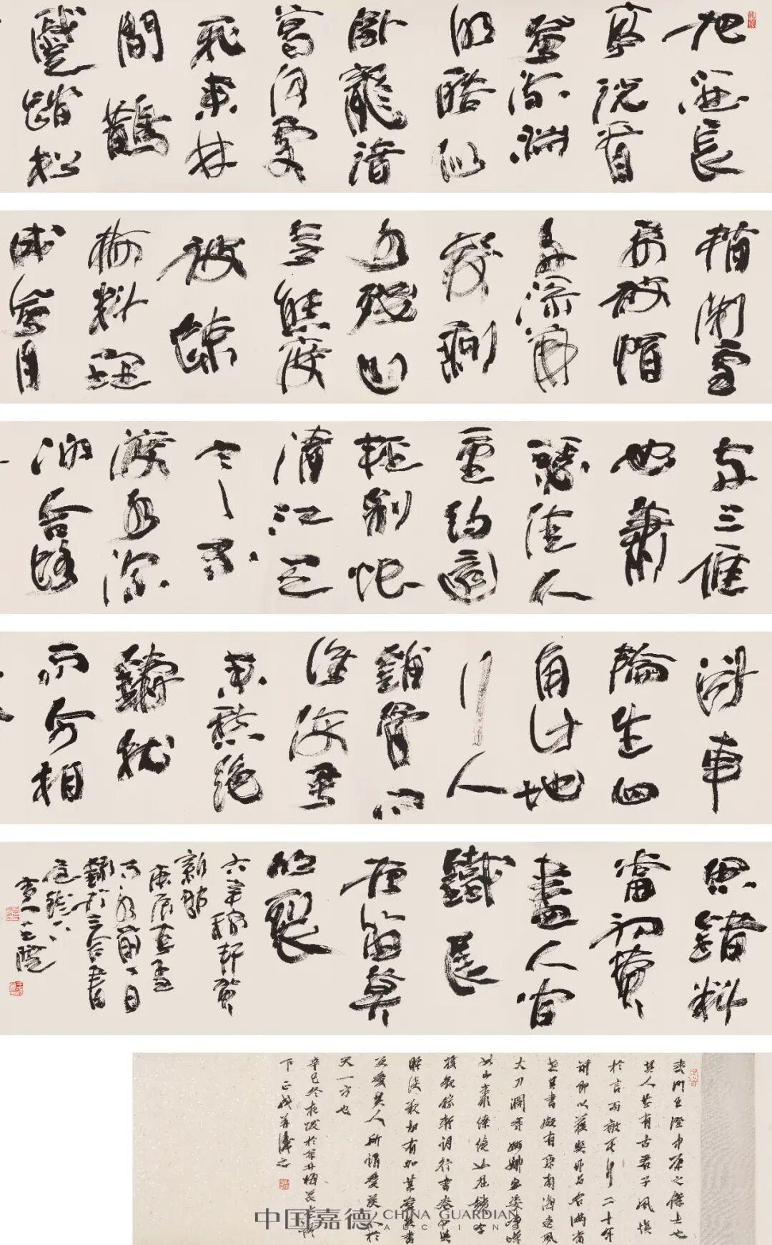 说明:Lot11331——Lot11348为同一藏家旧藏,原藏家直接得自艺术家本人。释文:宜弄花,宜观涛,宜远行。(长卷左至右顺序)