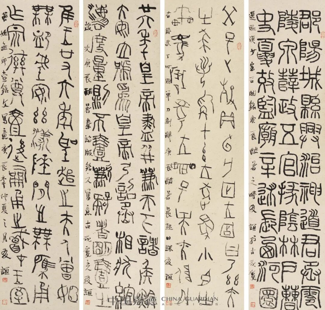 说明:此件展览作品直接得自艺术家本人。说明:2022年10月,经范曾书画鉴定中心确认为真迹。(一)曾姬无恤壶铭文写意,庚辰季仲夏之月,友谊。钤印:友谊之印