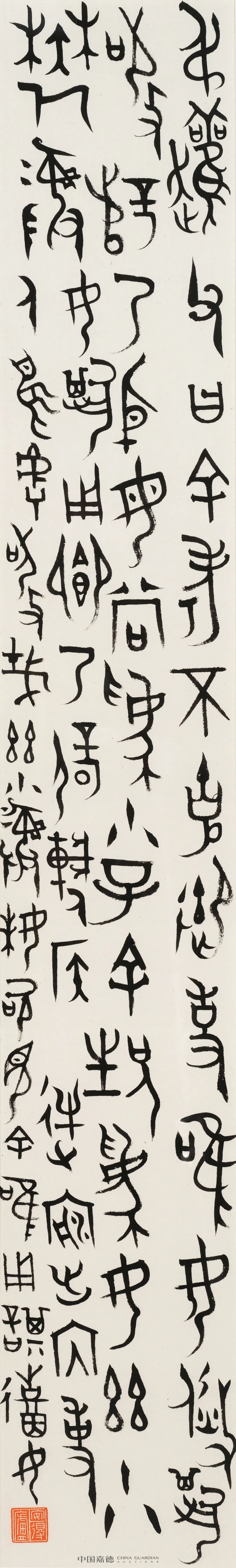 说明:作品源自艺术家家属。题识:叔父曰:余老,不克御事。唯汝焂其敬乂乃身,毋尚為小子。余兄為汝茲小鬱彝,汝其用饗乃辟軧侯出入使人。嗚呼!焂!敬哉!茲小彝妹隳,見余,唯用其歠汝。展览:“第五回·自鱼书法展”,北京灿艺术中心,2021年8月-9月。展览:“长乐未央——丁酉名家迎春吉语书法展”,北京且庐,2017年1月。