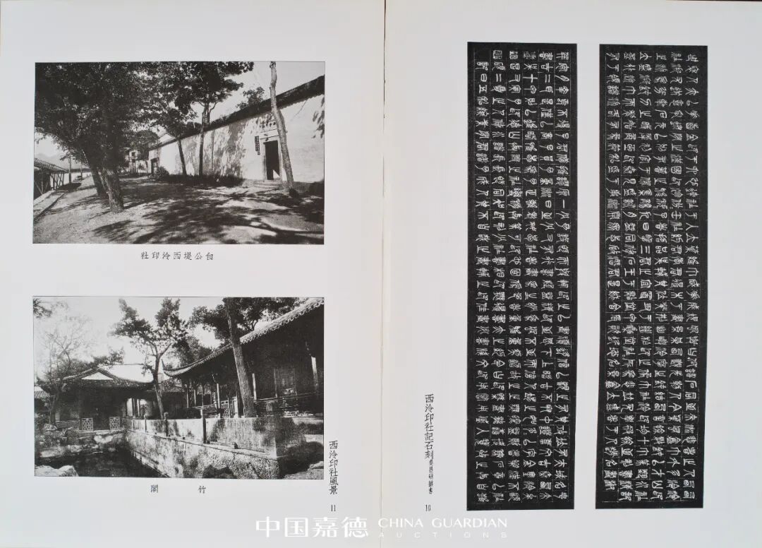 是书第一集内收西泠印社社员所藏一百五十余位金石家书画名品二百数十幅,自赵孟頫迄赵之谦,神采流溢,足征元明清三代书法画法之变,又收西泠印社早期风景图片二十八幅。卷首甲子年(1924)丁辅之叙,末刊吴熊跋,附诸家小传。第二集收金石家小像、书画等300余幅。