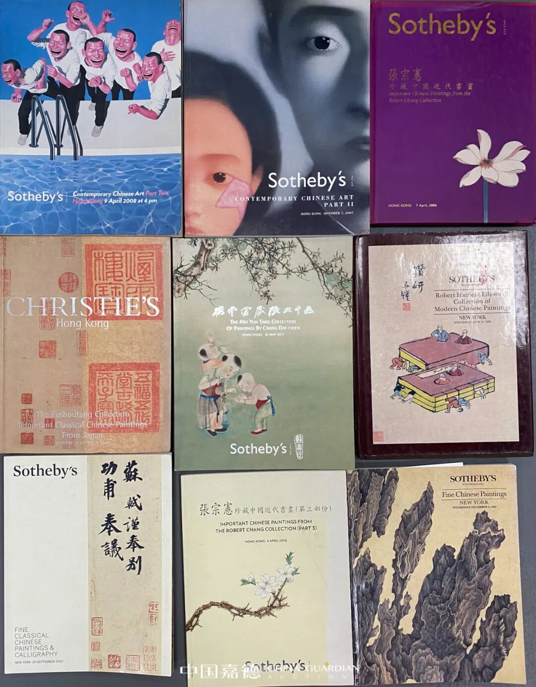 内收苏富比、佳士得公司1970年代至2010年代近现代书画、古代书画等门类图录共341册,其中不乏名家专场图录,另有部分中国当代油画、古董、西方战后及当代艺术、珠宝等图录。文献参考价值极大,为藏家和书画投资者必备的工具书,书中作品多市场流通,参考价值较大。