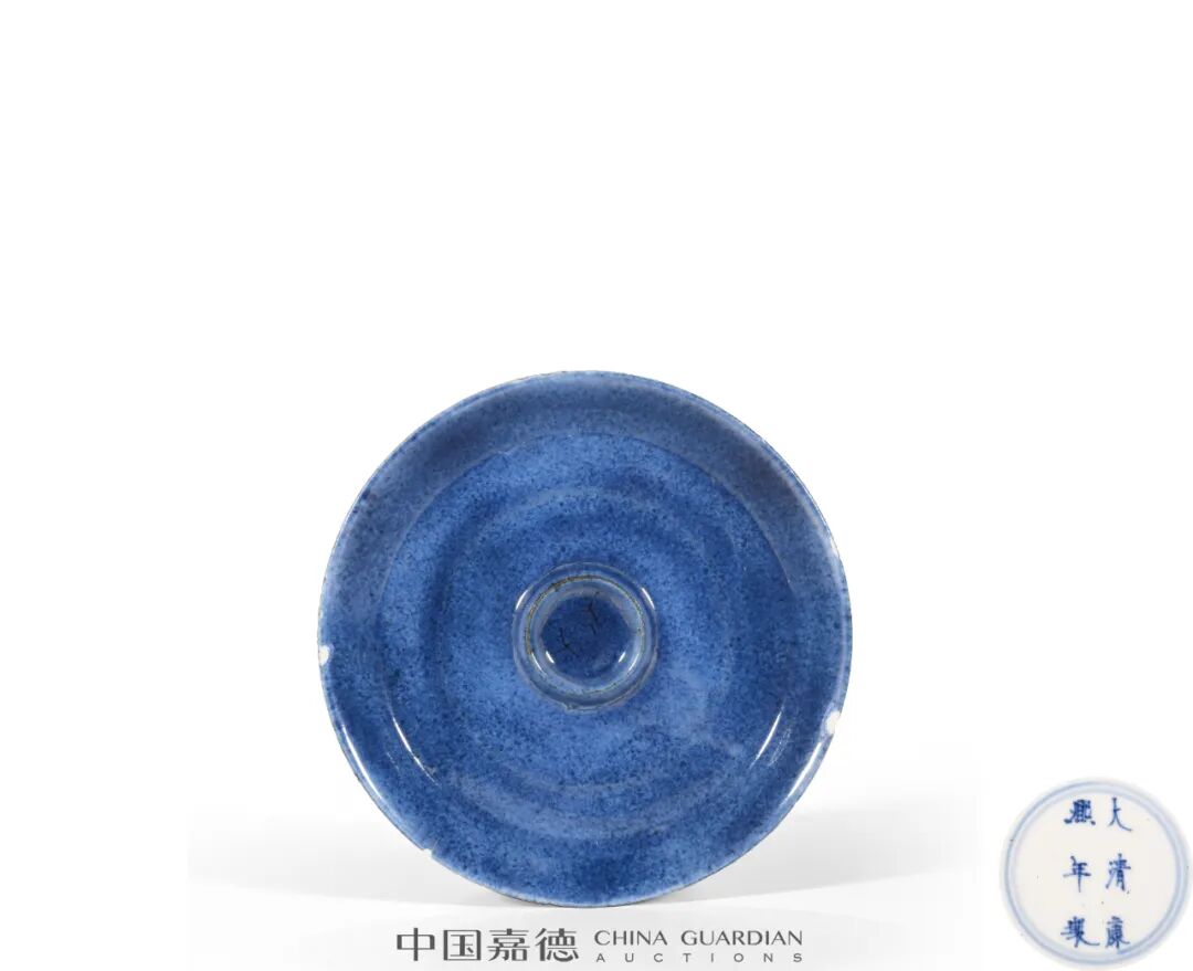 碗壁主体绘红蝠,上下翻飞,姿态各异,灵动至极。蝙又因为“蝠”与“福”同音,蝙蝠遂成为一种传统的吉祥象征物。蝙蝠在清代被广为运用在瓷器装饰上,以红彩绘画,又谐音“洪福齐天”。茄皮紫釉创烧于明代中期,流行于清早期,因色如茄子之紫,故得名。釉色有深浅两种,深者紫呈紫黑,浅者紫呈淡紫。有清一代,宫廷对于祭祀用器的制作重视异常,究其用途,应为祭天之礼器。![]()