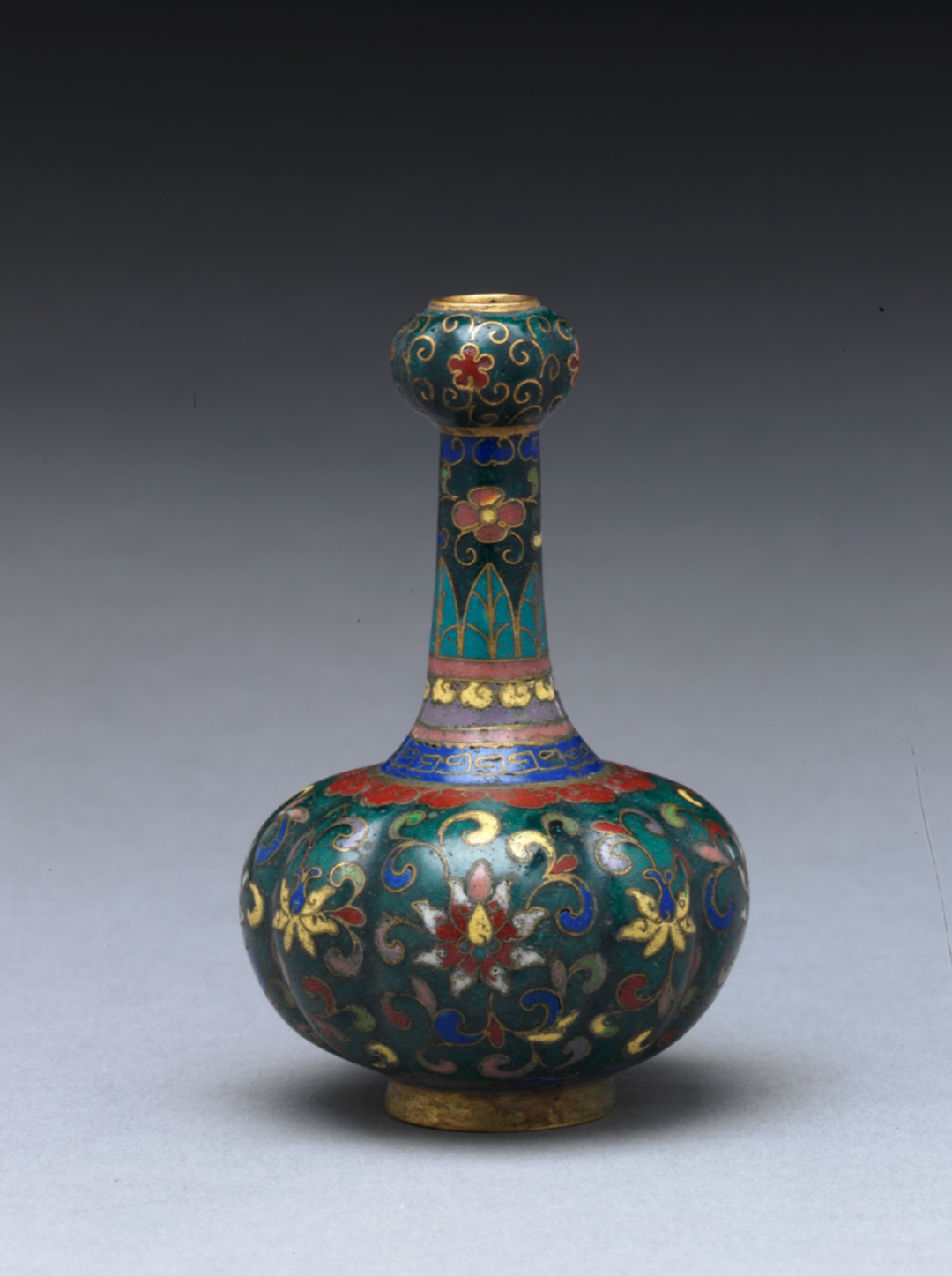 清 景泰蓝花卉纹蒜头瓶(图1) 美国大都会博物馆藏