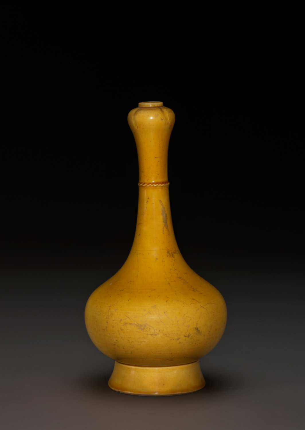 明万历 紫金釉留白松竹梅纹蒜头瓶 大英博物馆藏