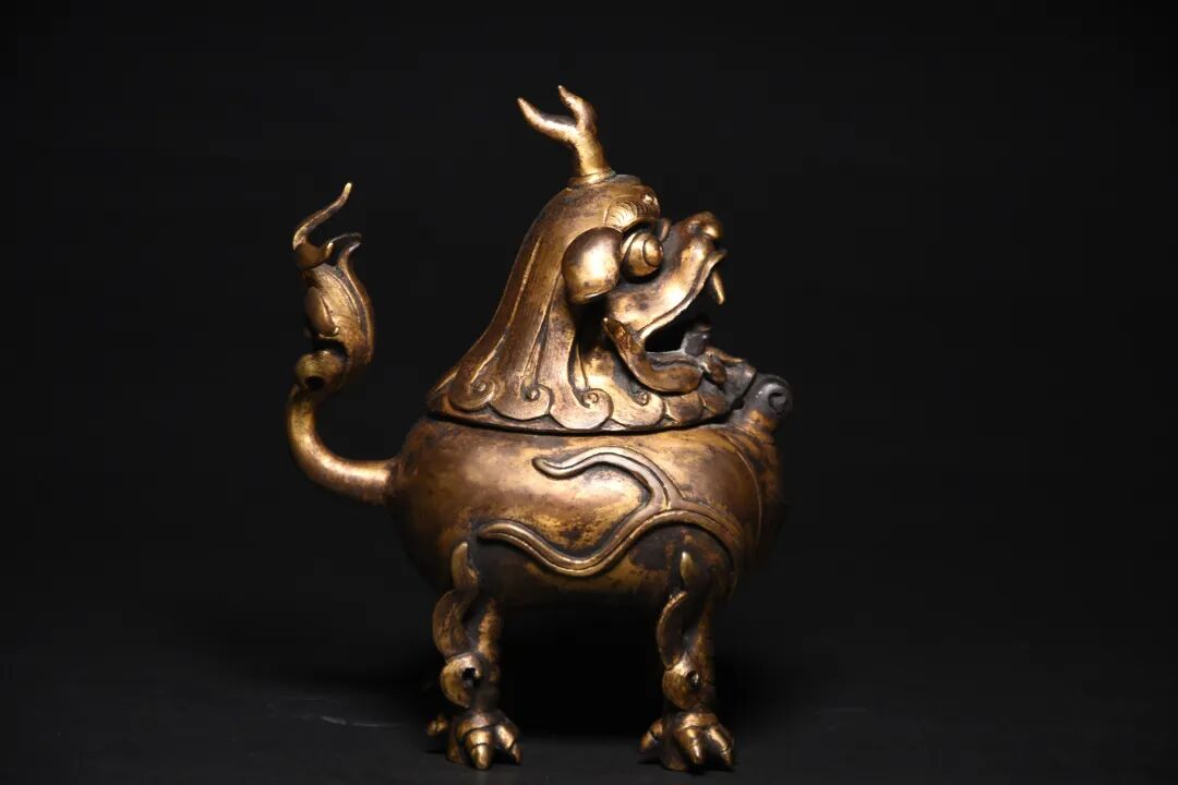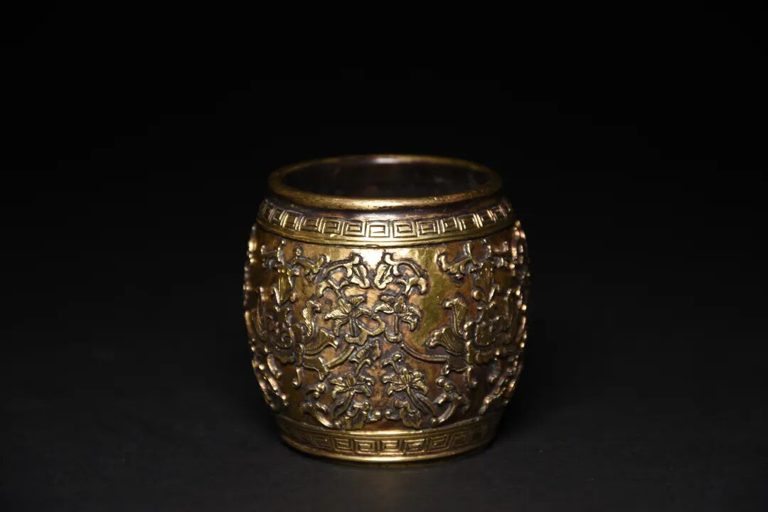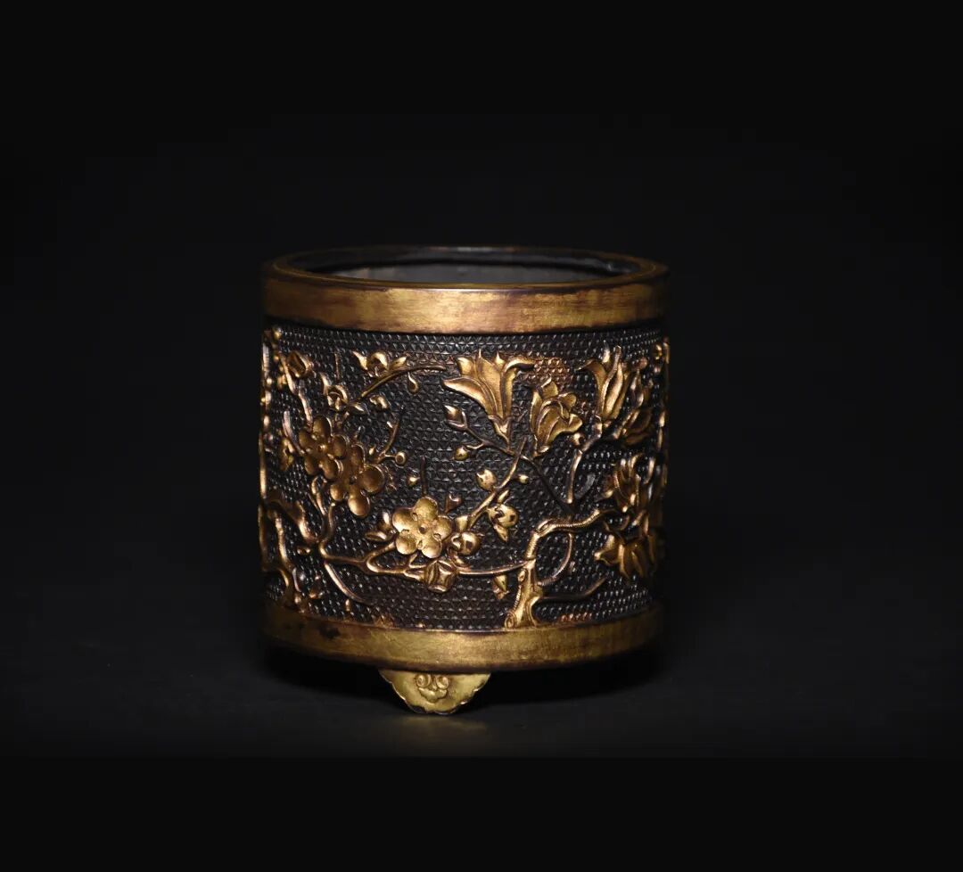明 铜鎏金錾刻花卉纹《云间胡文明制》款香炉
