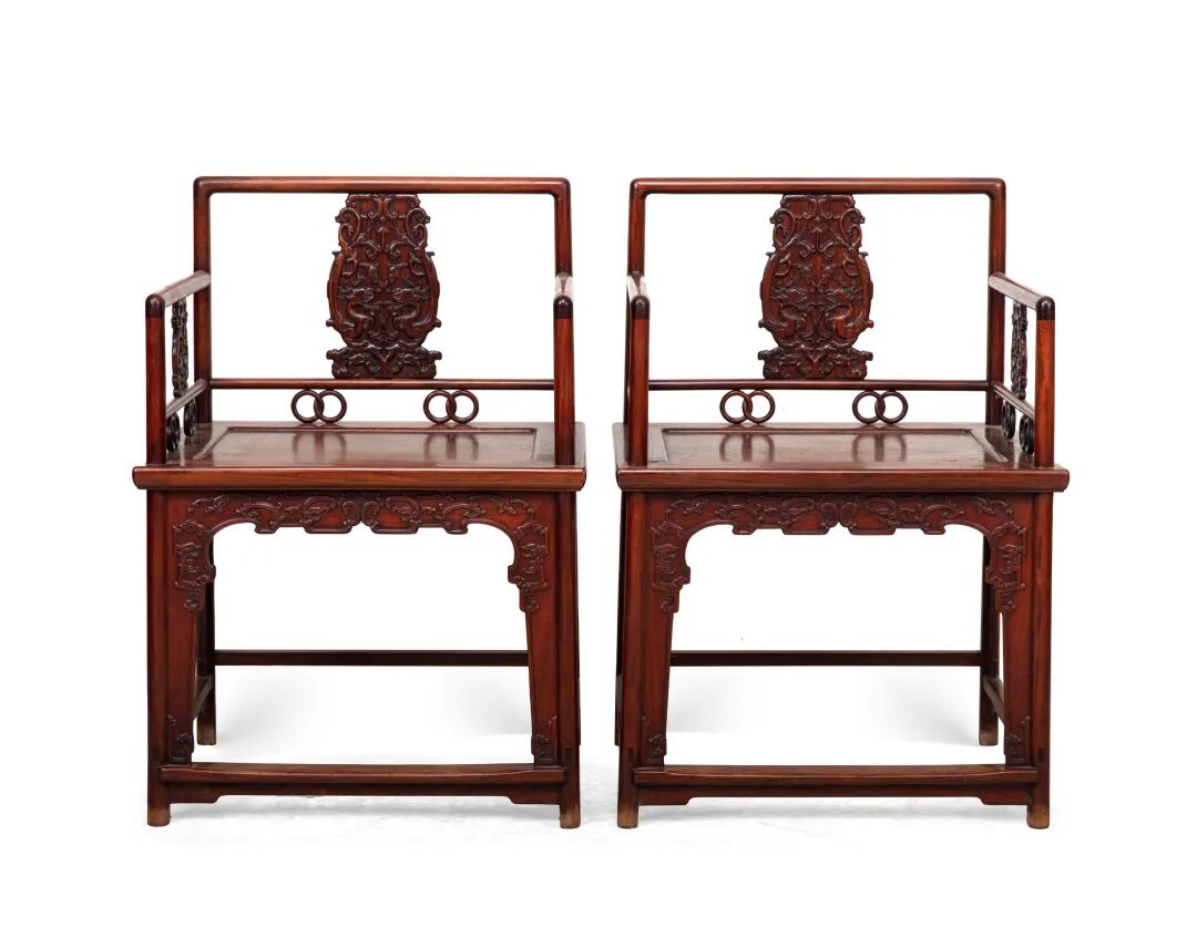 现代 花梨木满工龙纹玫瑰椅(一对)