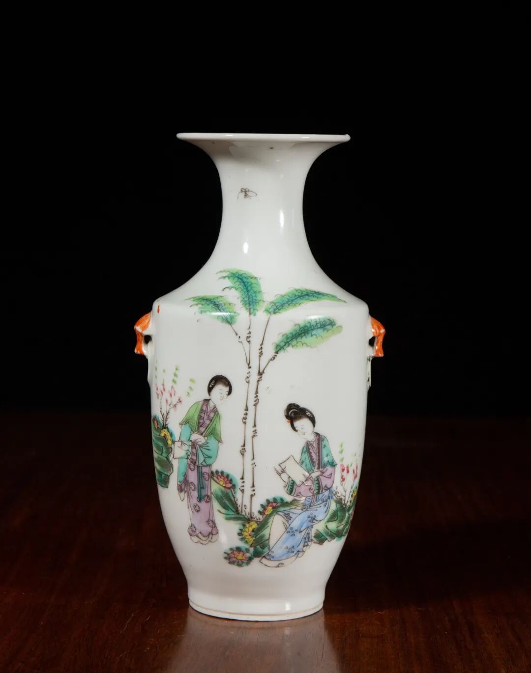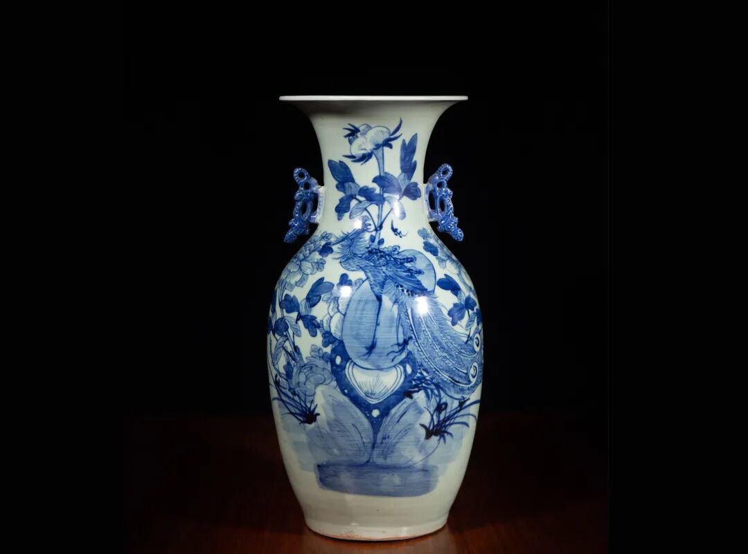 清光绪 豆青青花丹凤朝阳双耳瓶