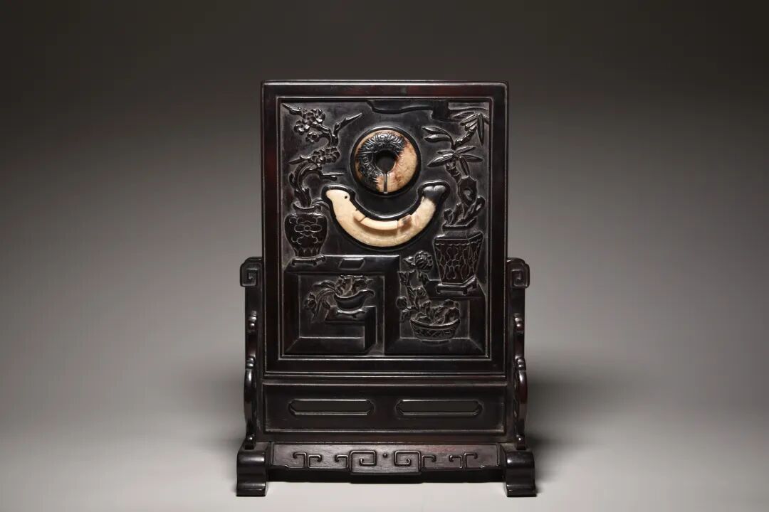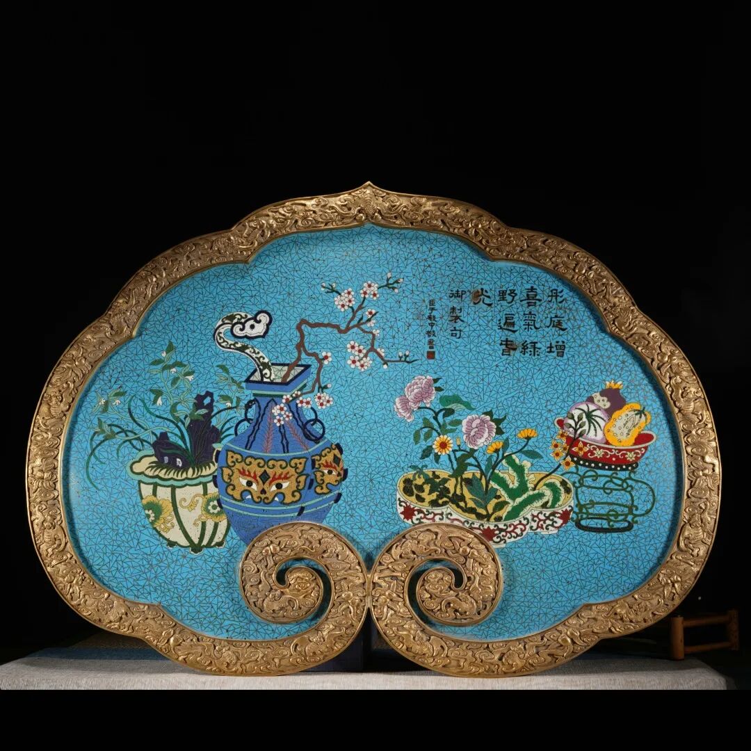 清晚期 铜胎珐琅鎏金博古如意挂屏