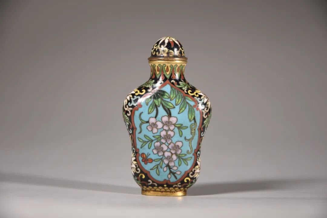 清 铜胎鎏金葡萄花卉纹景泰蓝鼻烟壶