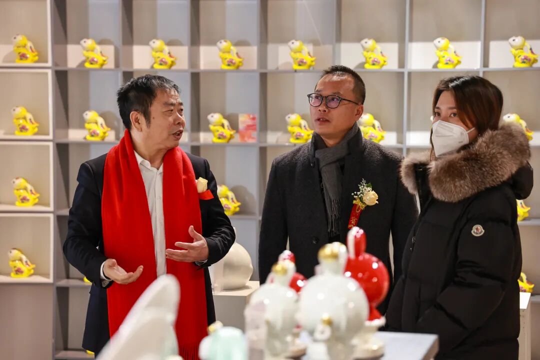 中国工艺美术大师、中国陶瓷艺术大师陈烈汉,清华大学美术学院教授王耀玲,收藏天下(北京)艺术品有限公司总裁董文星,光明日报文创中心主任顾军,北京荣会文化发展有限公司董事长宋宁颉,北京百嘉艺术发展有限公司总经理谢水莲,北京世纪迪嘉科技有限责任公司董事长马骁,北京亦宸云创科技有限公司陶瓷事业部市场总监杨进峰等参加了本次活动,北京陶瓷艺术馆馆长陈美霞主持了开幕式。