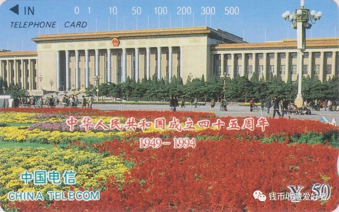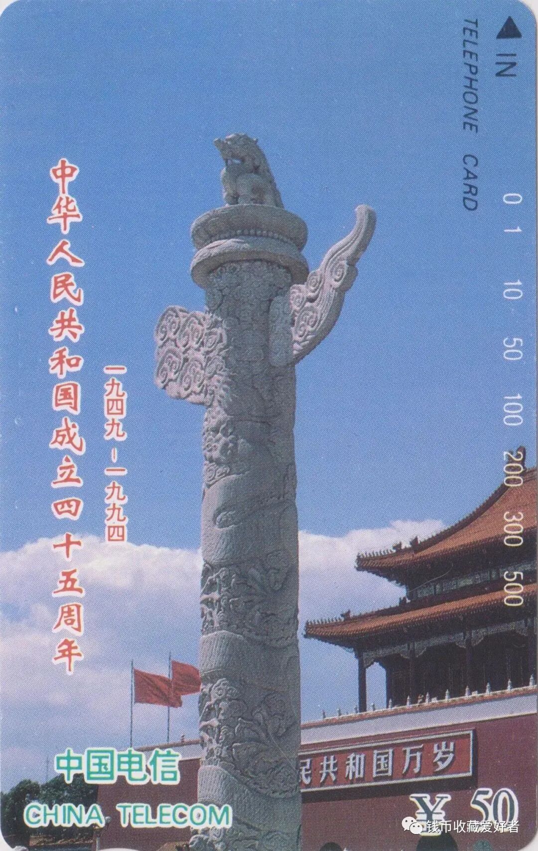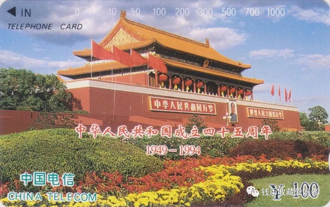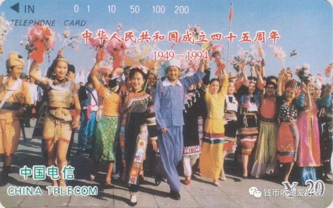 CNT-02中华人民共和国成立四十五周年电话磁卡,一套4枚,面值380元,发行量24.21万,发行日期1994年10月1日。
