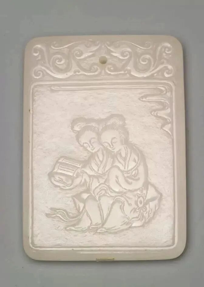 明 “子冈”款白玉二乔观书牌