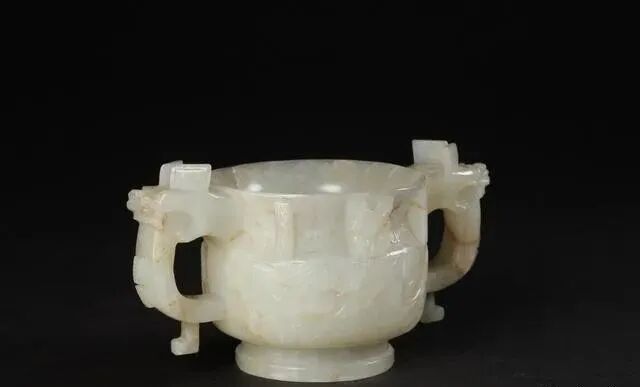 白玉「子冈」款兽面纹龙耳簋,明代