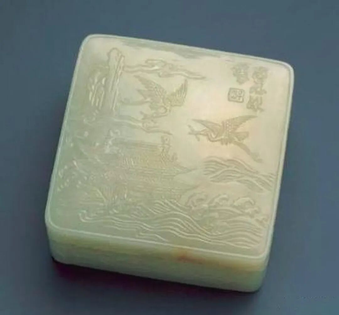 明子冈款白玉“海屋添寿”方盒