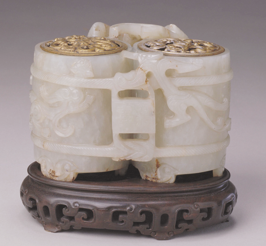 明青白玉夔凤纹子刚款樽