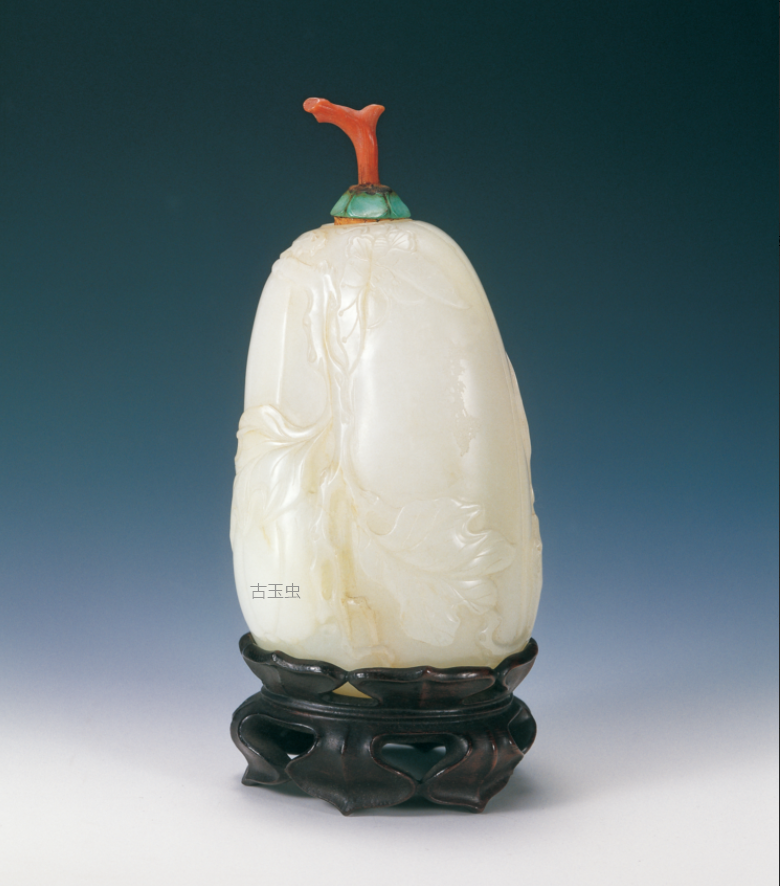 清乾隆 子冈款白玉琢瓜瓞绵绵烟壶