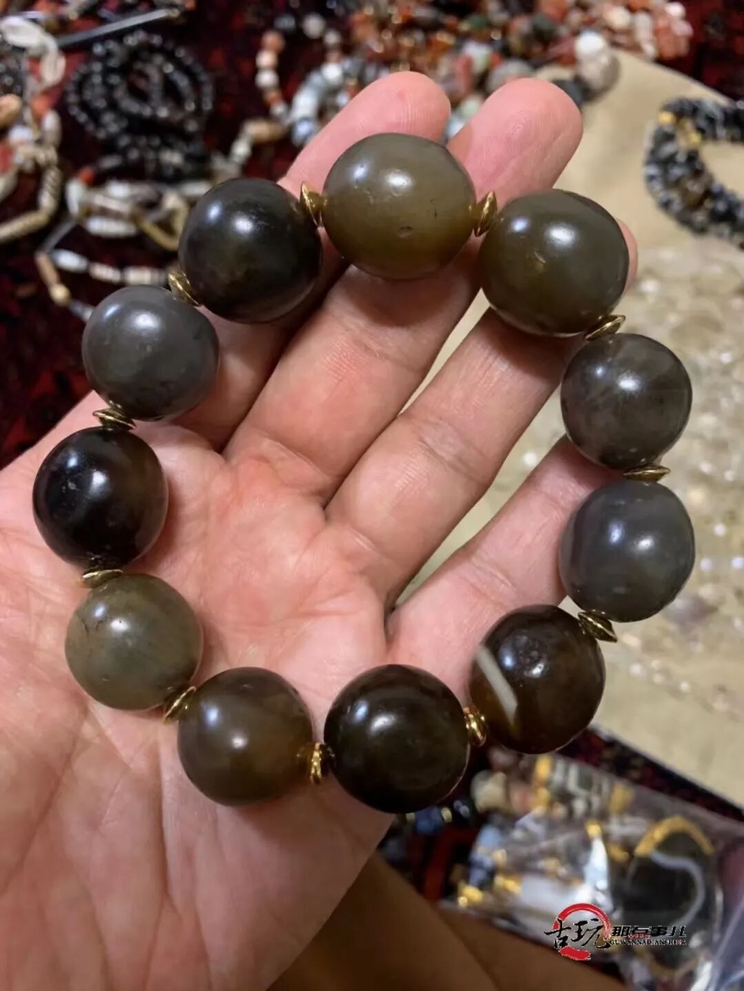 说什么“最早的天珠是由远古生物化石打磨而成,后来由于化石的稀缺,古西藏人开始采用九眼石页岩打磨天珠”,过手过眼那么多老天珠,从未听过、见过古生物化石或九眼石页岩质地的,但是低劣的新仿假天珠倒是的确大量使用这些材质。
