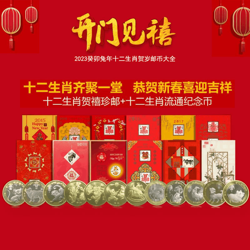 这套贺岁邮币大全将2012年到2023年,连续12年的贺禧系列小全张全部收录,规模宏大,珍稀无比。