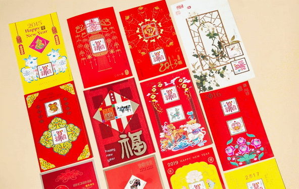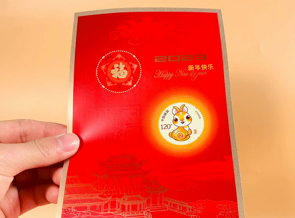 小全张边饰采用寓意富贵吉祥的图案纹样及红色背景,红黄相应,烘托浓厚的节日氛围。