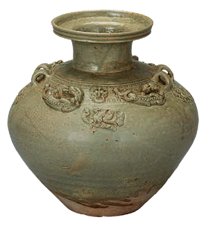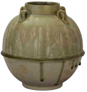 这一时期,由于佛教迅速传播并深刻地影响了文学艺术和社会生活,象征佛教文化的莲瓣纹成为青瓷的主流装饰纹样。莲瓣纹装饰的壶、尊、罐、碗等都是南北朝时期较为流行的产品。特别是造型浑厚、装饰华丽的莲花尊代表了当时制瓷工艺的最高水平。另外,中西文明交融的各种元素也是陶瓷装饰的重要纹样。