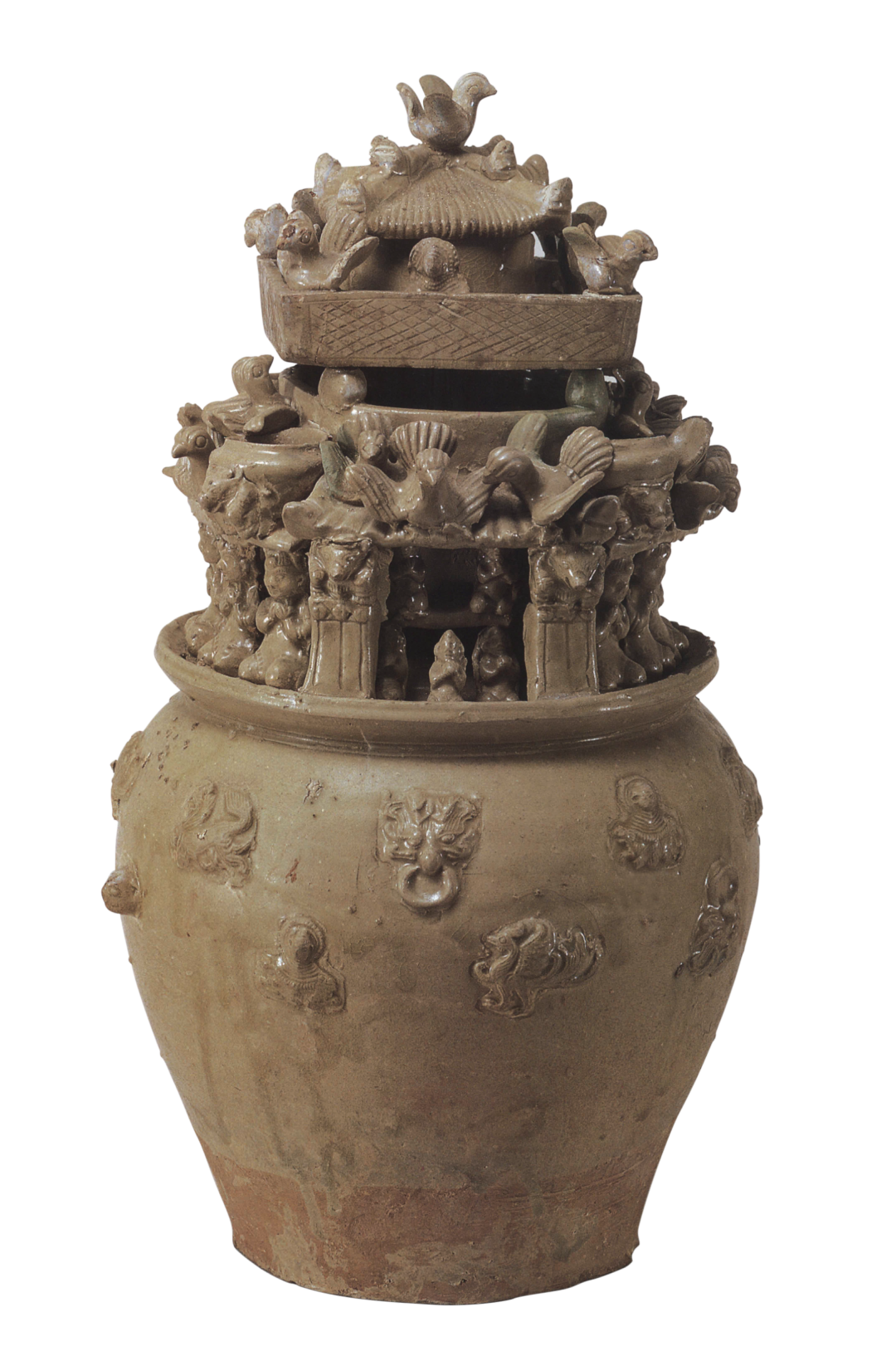 谷仓罐,又称“魂瓶”“堆塑瓶”,流行于三国(东吴)、西晋时期,是江南地区有代表性的随葬明器,有陶、瓷制品,由东汉的五联罐演变而来。