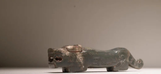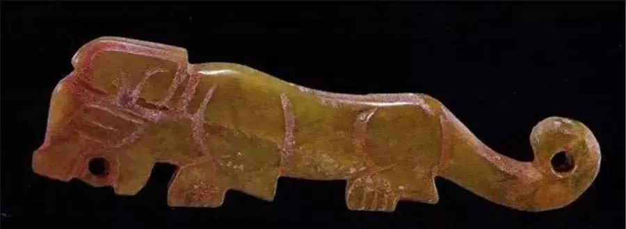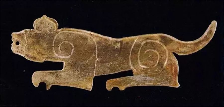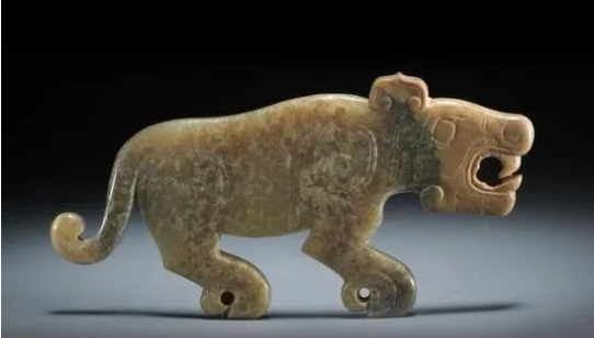 汉代玉虎多以一种纹饰图案出现,装饰于玉铺首等四灵纹中。单独的虎形佩其头部则很像是龙头,轮廓线也饰以绳纹。