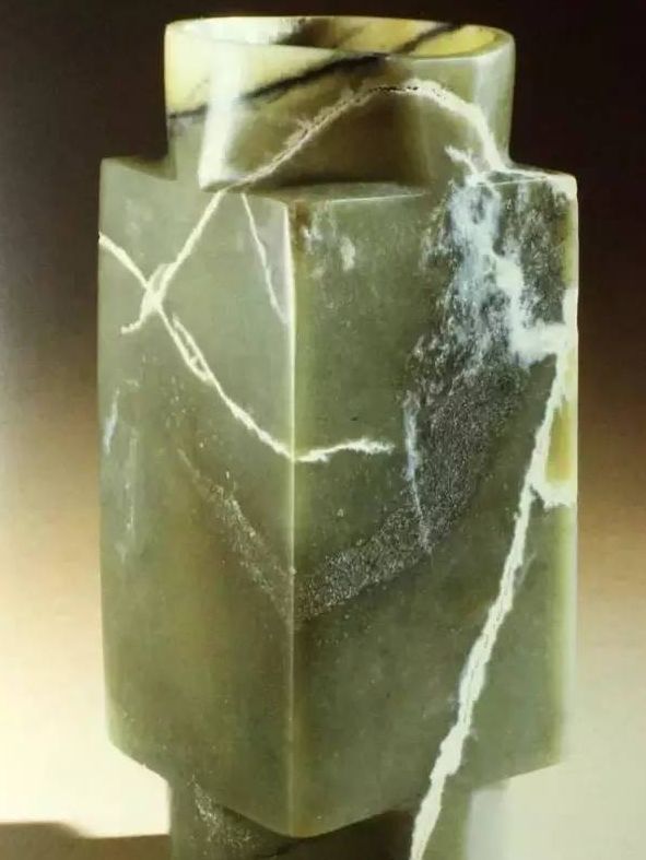 商周时期玉琮数量不多,从出土的实物看,这一时期琮的形体普遍较矮小,多光素无纹。玉琮切割规整,中孔较大,琮体较新石器时略薄。殷墟妇好墓曾出土了两件有纹饰的玉琮,一件上下各饰一组弦纹,四角有凸棱,侧面饰竖道弦纹,该造型很少见。春秋战国时期玉琮的造型与西周相近,形体较小,战国部分玉琮刻有细致的兽面纹、勾云纹等纹饰。汉代玉琮已不再制造。![]()