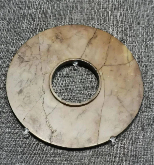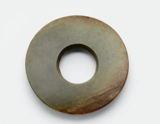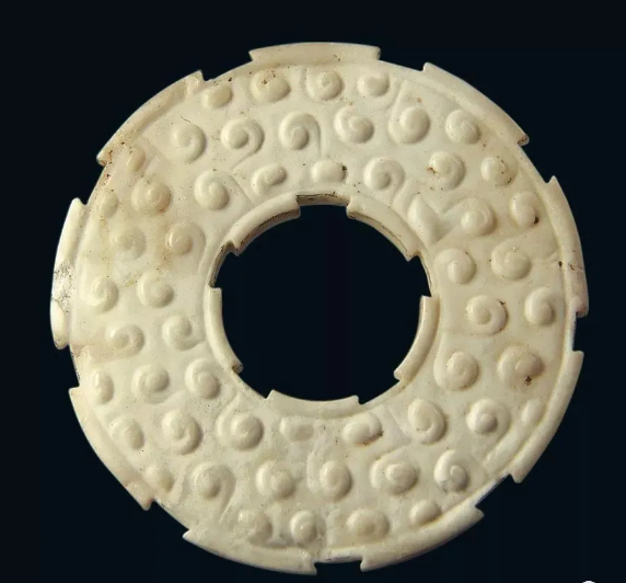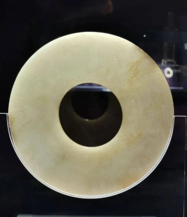 玉璧是一种中央有穿孔的扁平状圆形玉器,穿孔称作“好”,边缘器体称作“肉”,“六瑞”之一。(注:成书于战国末期的《周礼》,把壁、琮、圭、璋、琥、璜等玉器作为“六器”、“六瑞”。)![]()