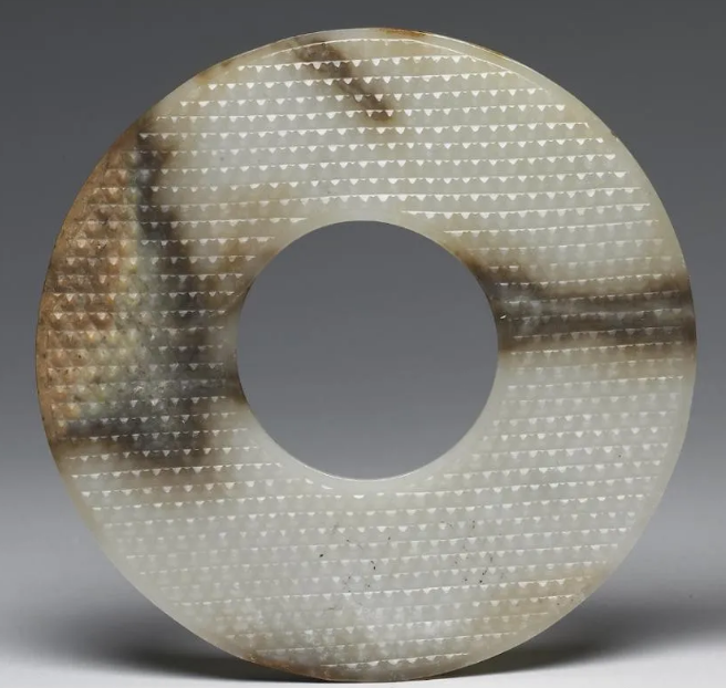 考古发现,玉璧最早产生于距今约5、6千年前的新石器时代,一直到清朝,都有不同形制和纹饰的玉璧出现。