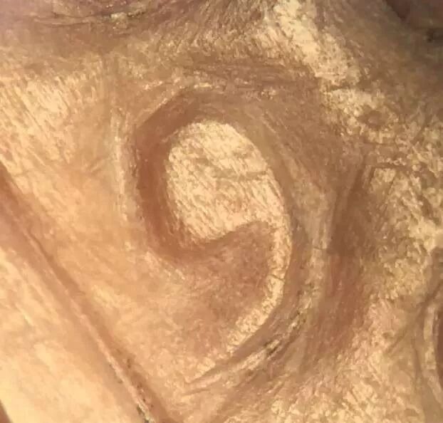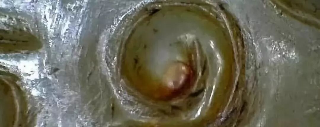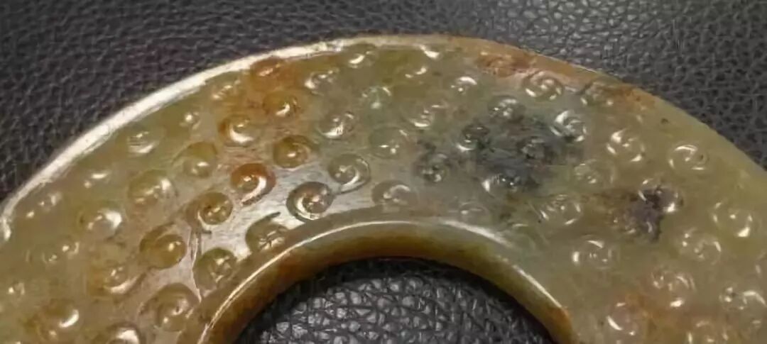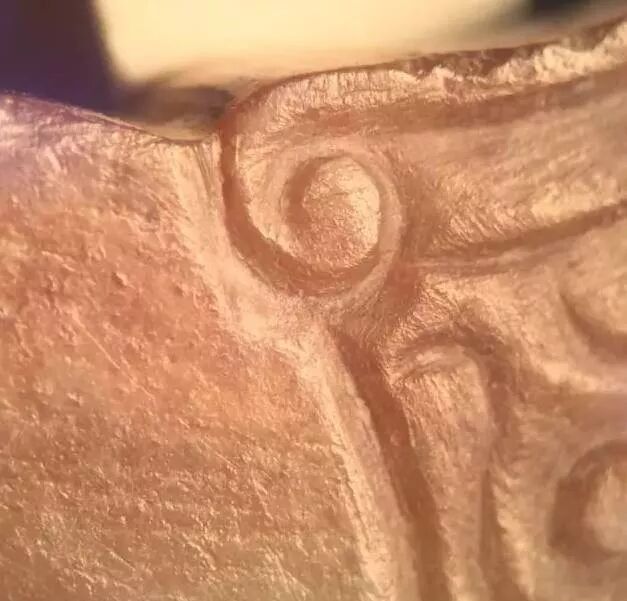 红山玉器的打洼部位的打磨痕迹和风化皮壳特征。