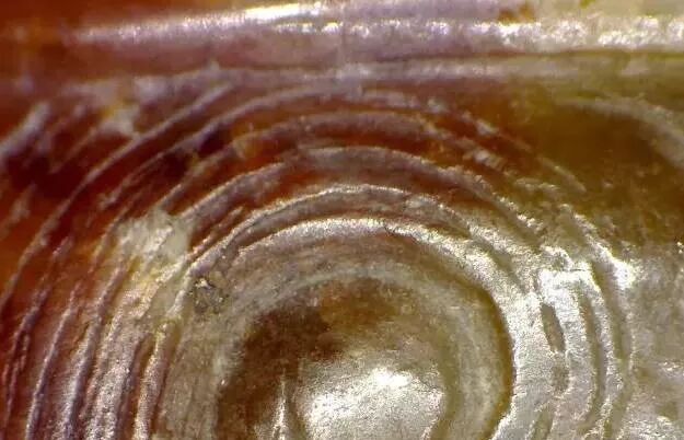 这样的所谓风化橘皮纹也是在高倍放大镜下才看的清楚,所以,一般造假的风化橘皮纹都会很夸张。