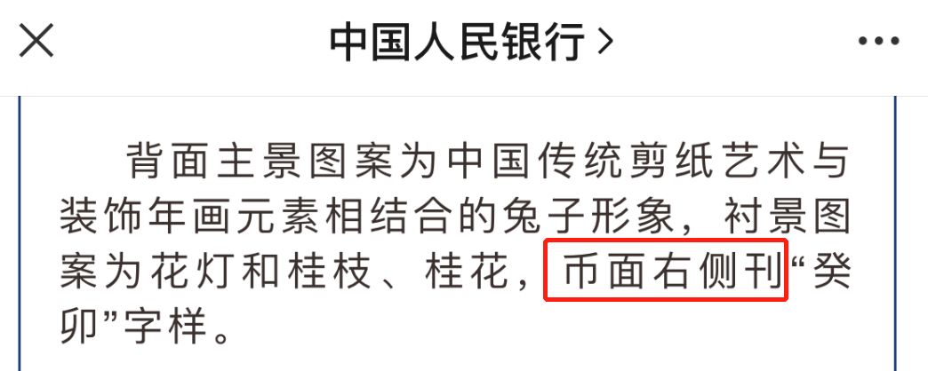 兔年纪念币,是我国二轮生肖普通纪念币中的第9枚。但图案却与前8枚不同——干支纪年法写在了右侧。