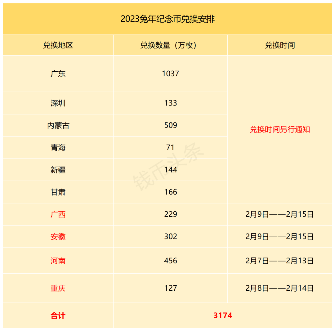 截止至9号,根据央行公布的统计情况,兔年纪念币已经兑换了7067万枚,扣掉延迟兑换的3174万枚,仅余1759万枚没有兑换。
