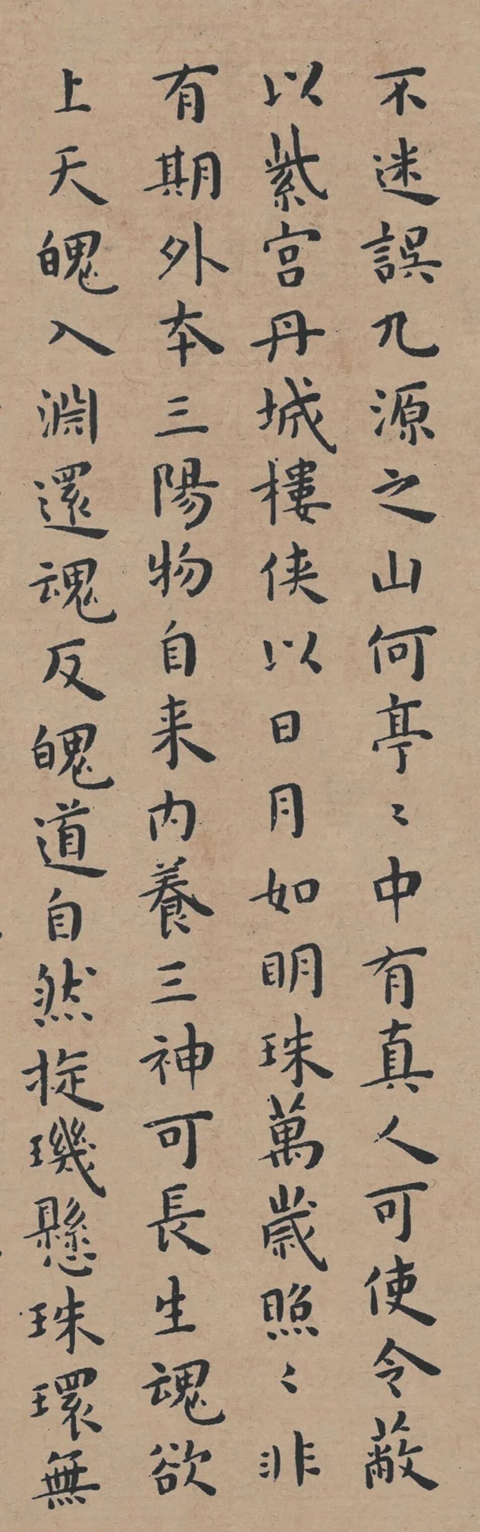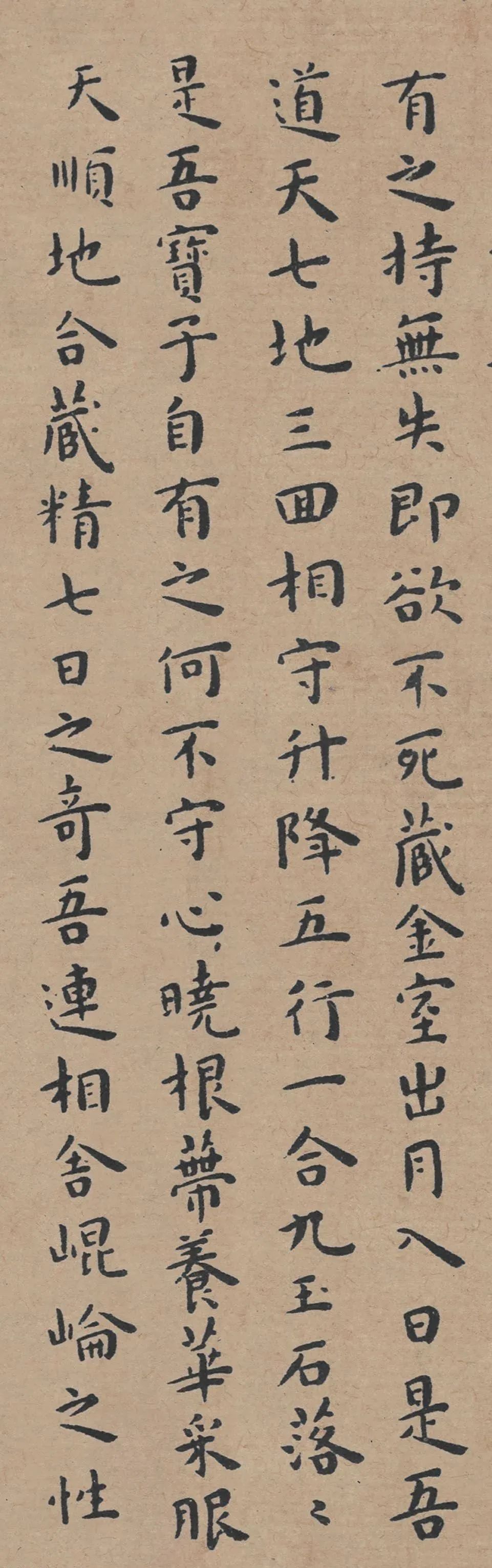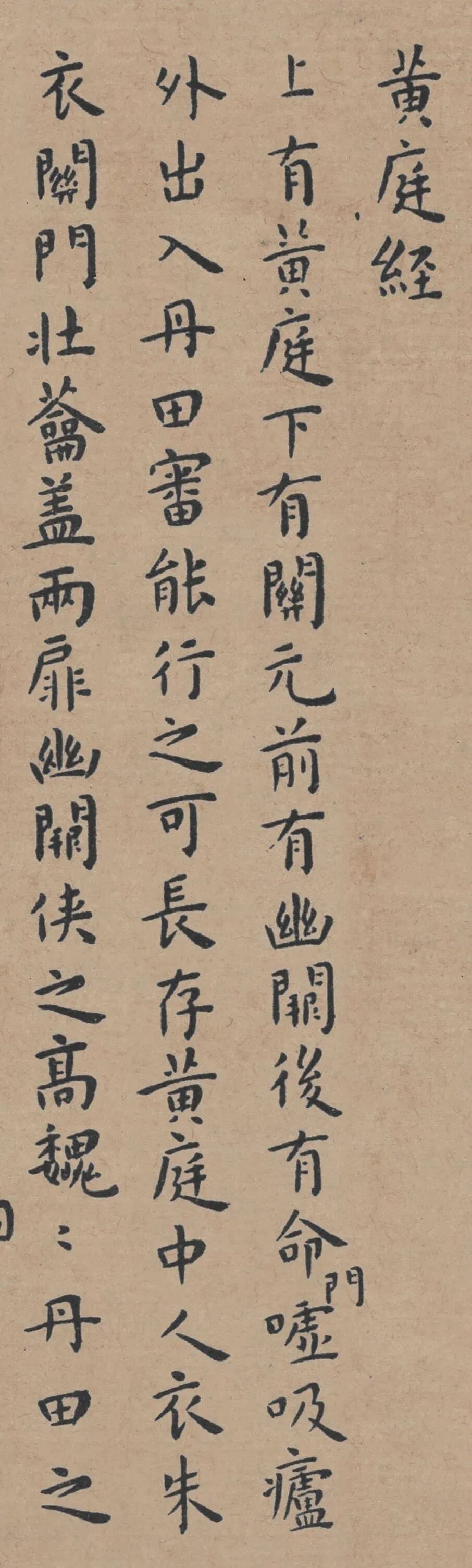 《黄庭经》是魏晋时期颇为流行的道家养生修炼之书。传王羲之所书小楷《黄庭经》系《外景经》。此帖其法极严,其气亦逸,有秀美开郎之意态。关于黄庭经,有一段传说:山阴有一道士,欲得王羲之书法,因知其爱鹅成癖,所以特地准备了一笼又肥又大的白鹅,作为写经的报酬。王羲之见鹅欣然为道士写了半天的经文,高兴地“笼鹅而归”。原文载于南朝《论书表》,文中叙说王羲之所书为《道》、《德》之经,后因传之再三,就变成了《黄庭经》了。因此,《黄庭经》又俗称《换鹅帖》,无款,末署“永和十二年(356)五月”,现在留传的只是后世的摹刻本了。