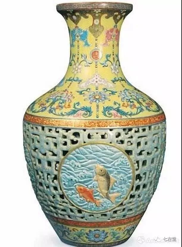2010年,英国班布里奇拍卖行以5.54亿人民币成交的清乾隆粉彩镂空“吉庆有余”转心瓶,成为史上最贵的中国瓷器。