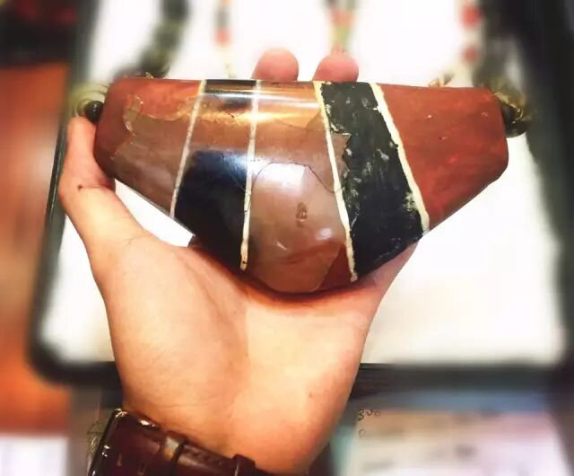 这种珠子由三种不同颜色构成珠子表面的装饰图案