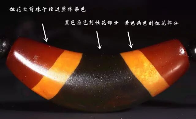 即珠子蚀花之前经过整珠染色而非表面涂色
