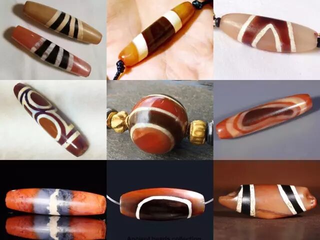 笔者曾在《喜马拉雅天珠》一书中对瑟珠(dZi,天珠)系列中的三色措思有过专门的小节,但没有对全部不同系列蚀花工艺的三色珠进行分类。本文将迄今可见的所有蚀花工艺制作的玛瑙玉髓珠中的三色珠纳入分类,今后如有新的资料出现,可在此框架下调整。